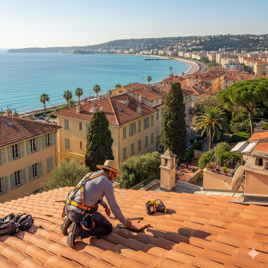 En moyenne 30 à 50 ans pour une toiture en tuiles, mais dans le 06 l’exposition au sel marin et au UV peut réduire la durée si l’entretien n’est pas régulier. Un contrôle tous les 2 ans est recommandé.